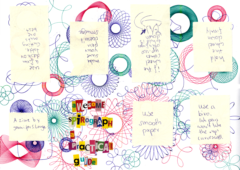 I love spirograph patterns, and will often use them in my artworks. Here are a few tips to make sure they turn out nice. Coloured eight-page one-page minizine.