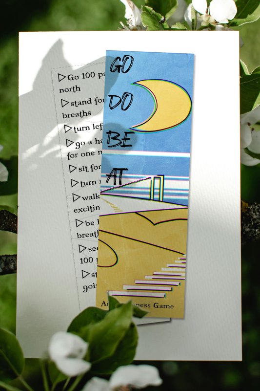 Lacking a Simon to tell you what to do, you can use this bookmark. Wherever you are, just start. You can use it as an icebreaker, too: if you don't know where North is, ask someone. And if someone asks you, what you are doing, show them the bookmark and explain. Invite them if you wish. Play it together and exchange your stories.